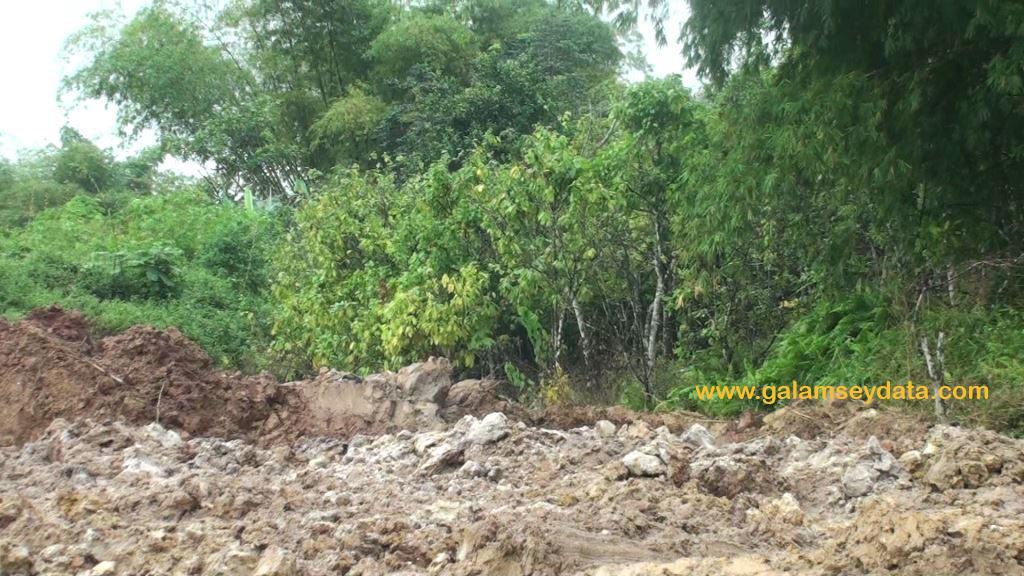 Excavation of pits and trenches on land to reach shallow gold veins. Miners use Excavators, pickaxes, shovels, and washing plants.