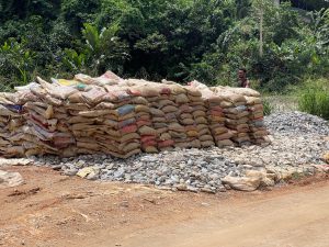 Once the gold-bearing ore is brought to the surface in sacks, it undergoes several rudimentary processing stages to extract the gold: